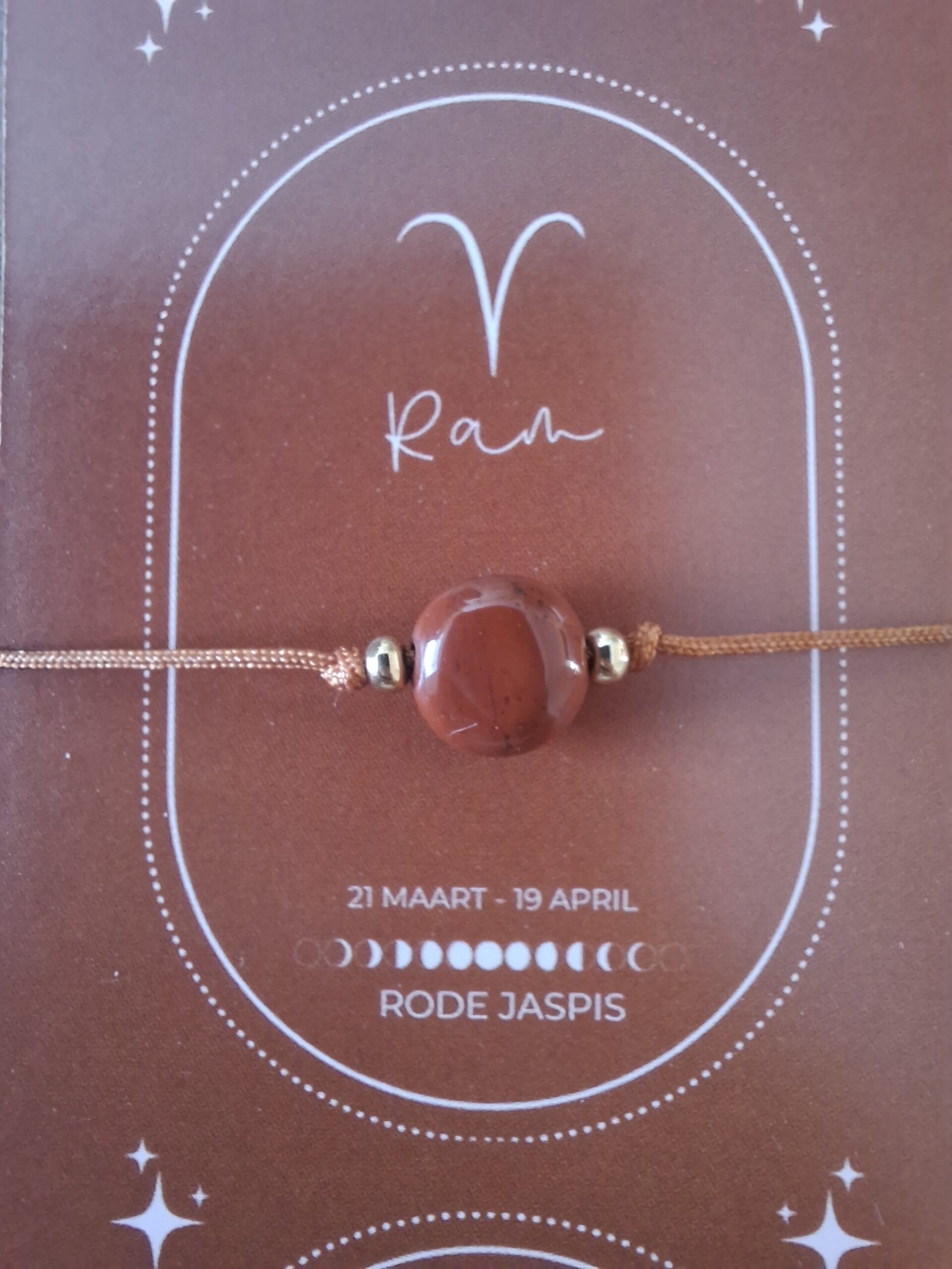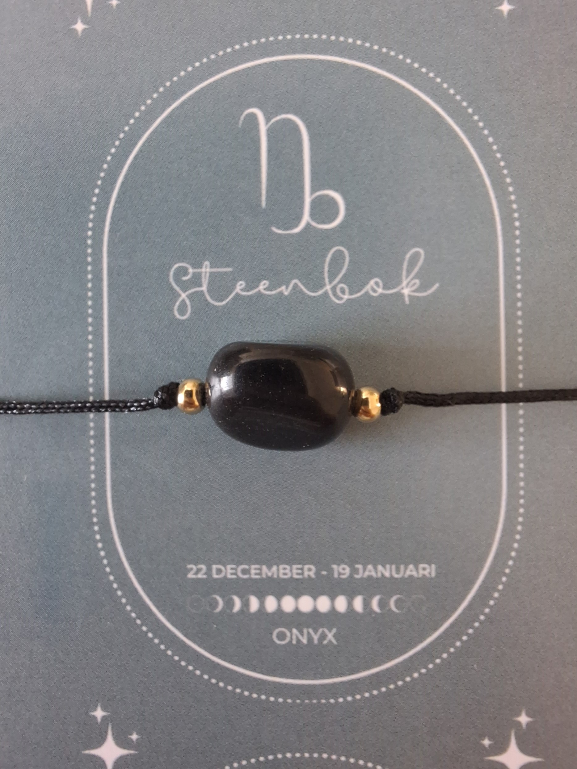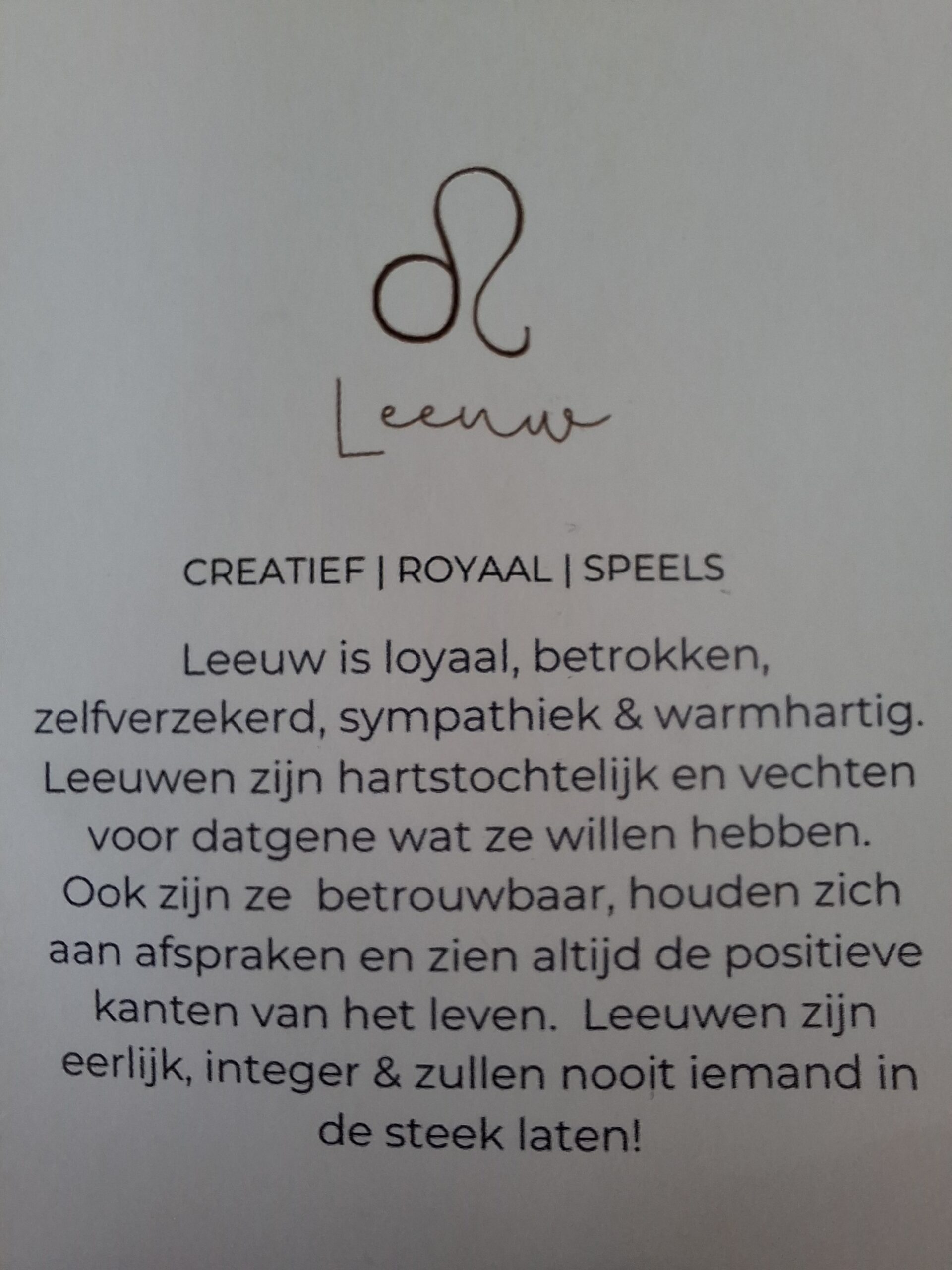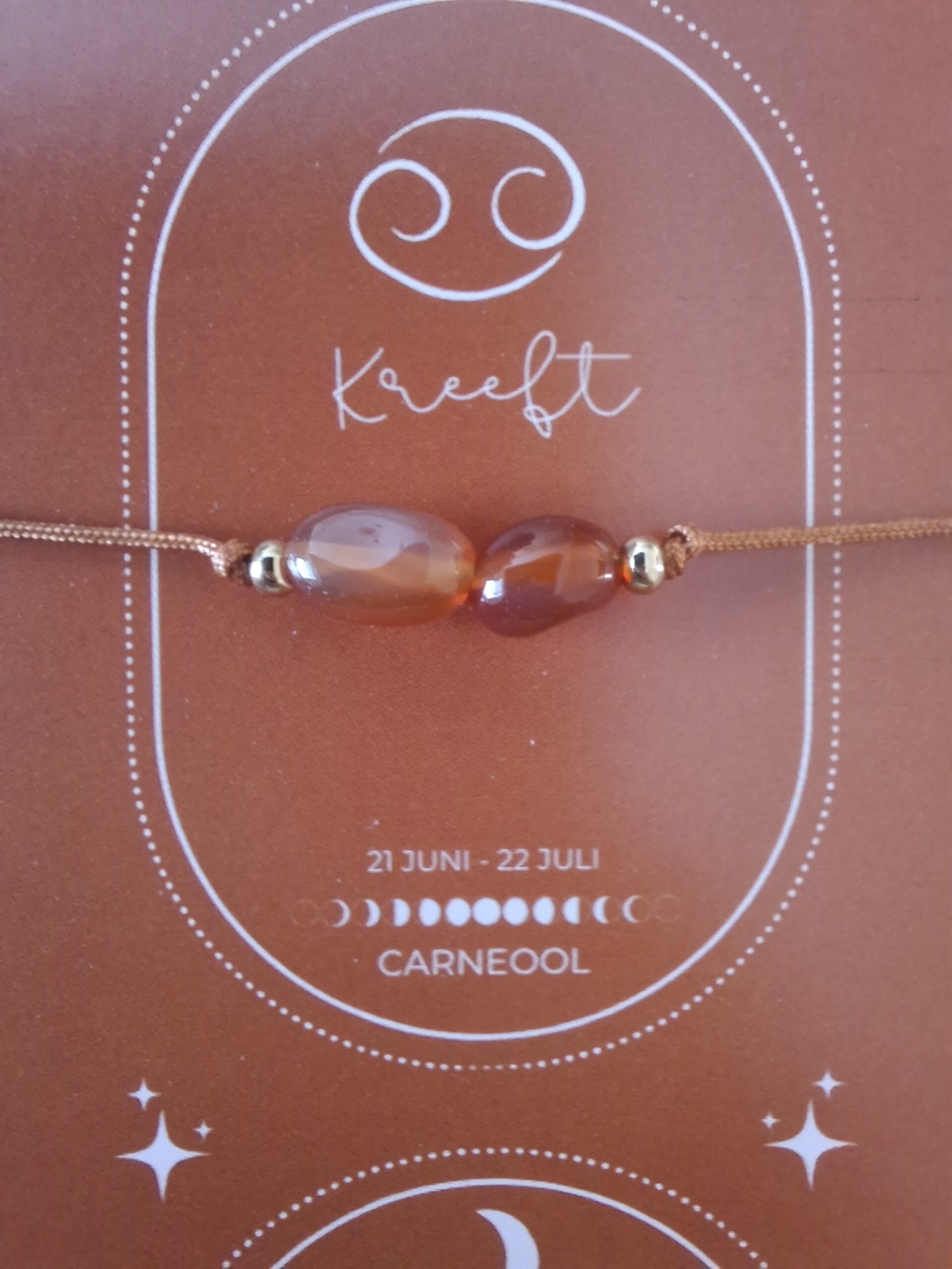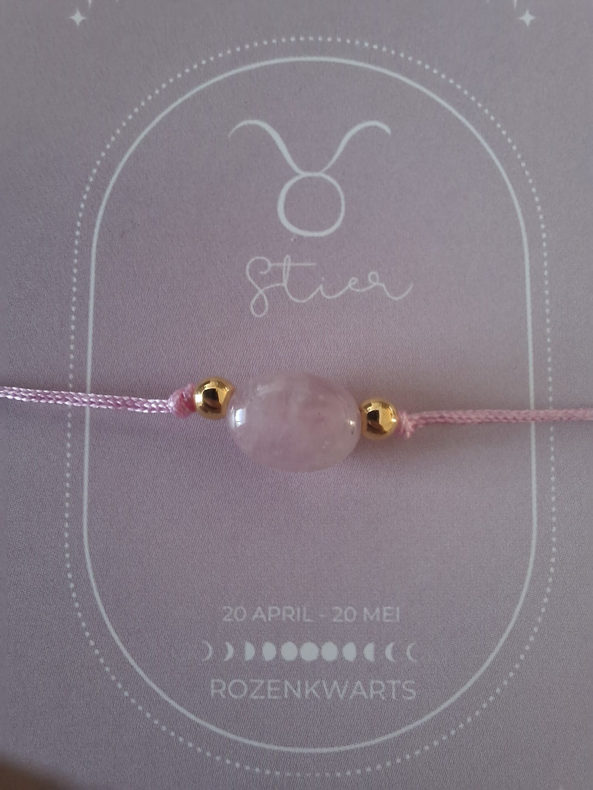 Bij iedere armband ontvang je een bijpassend kaartje: op de voorkant vind je de edelsteen en op de achterkant staat een uitleg van de kracht van de edelsteen én een korte beschrijving van het sterrenbeeld. Zo wordt het sieraad niet alleen een stijlvol accessoire, maar ook een persoonlijke reminder die jou dagelijks inspireert en ondersteunt.