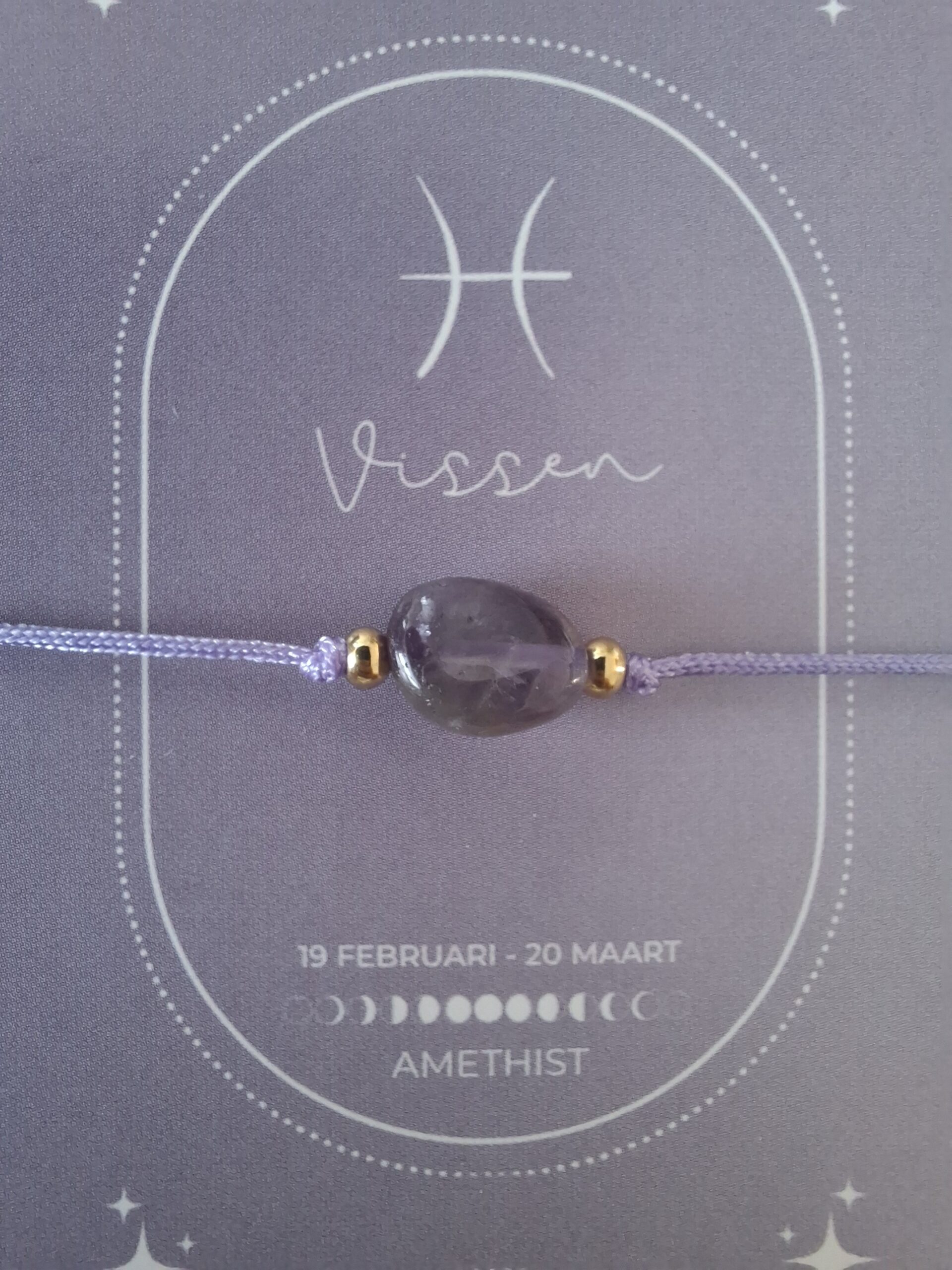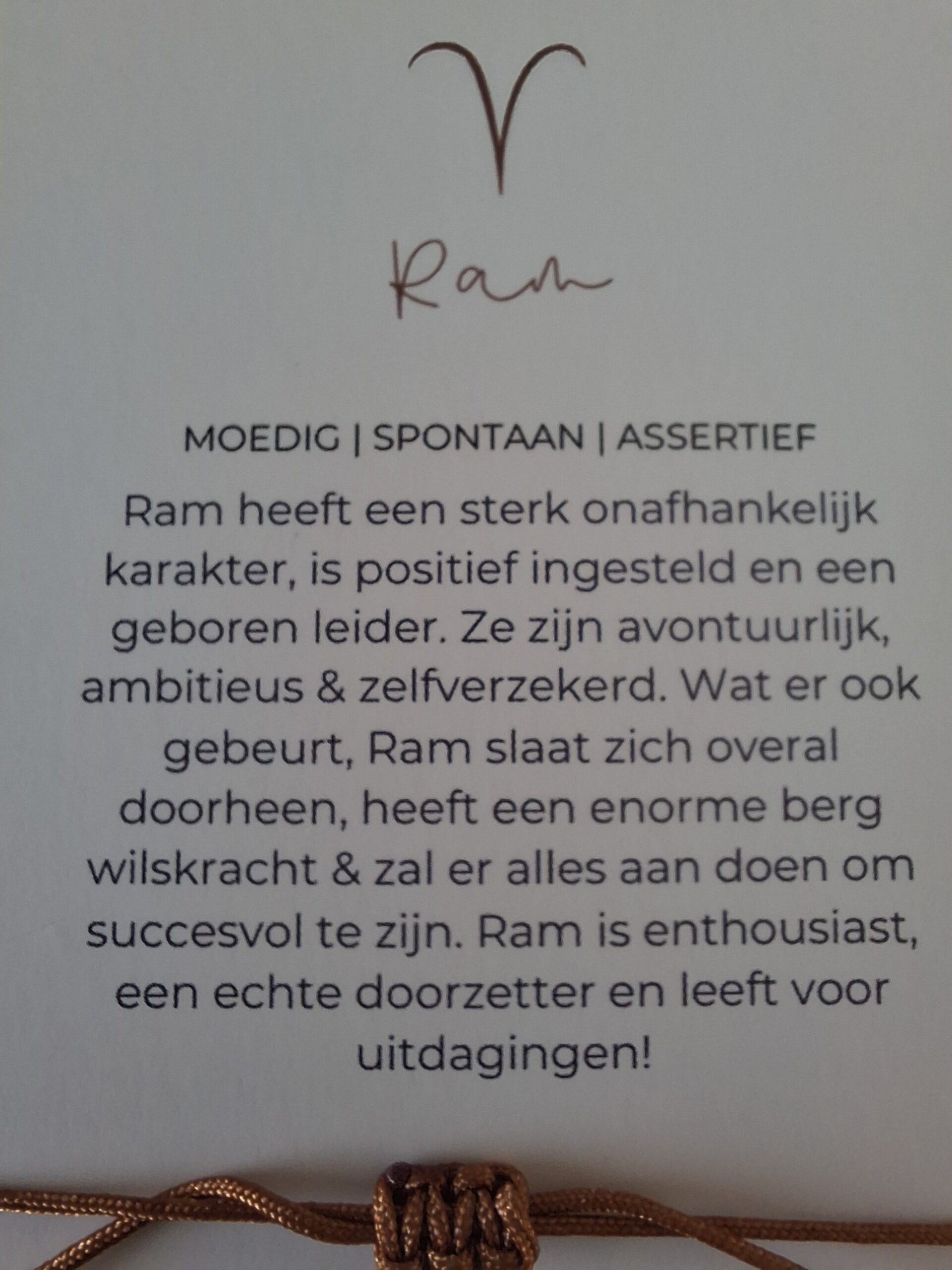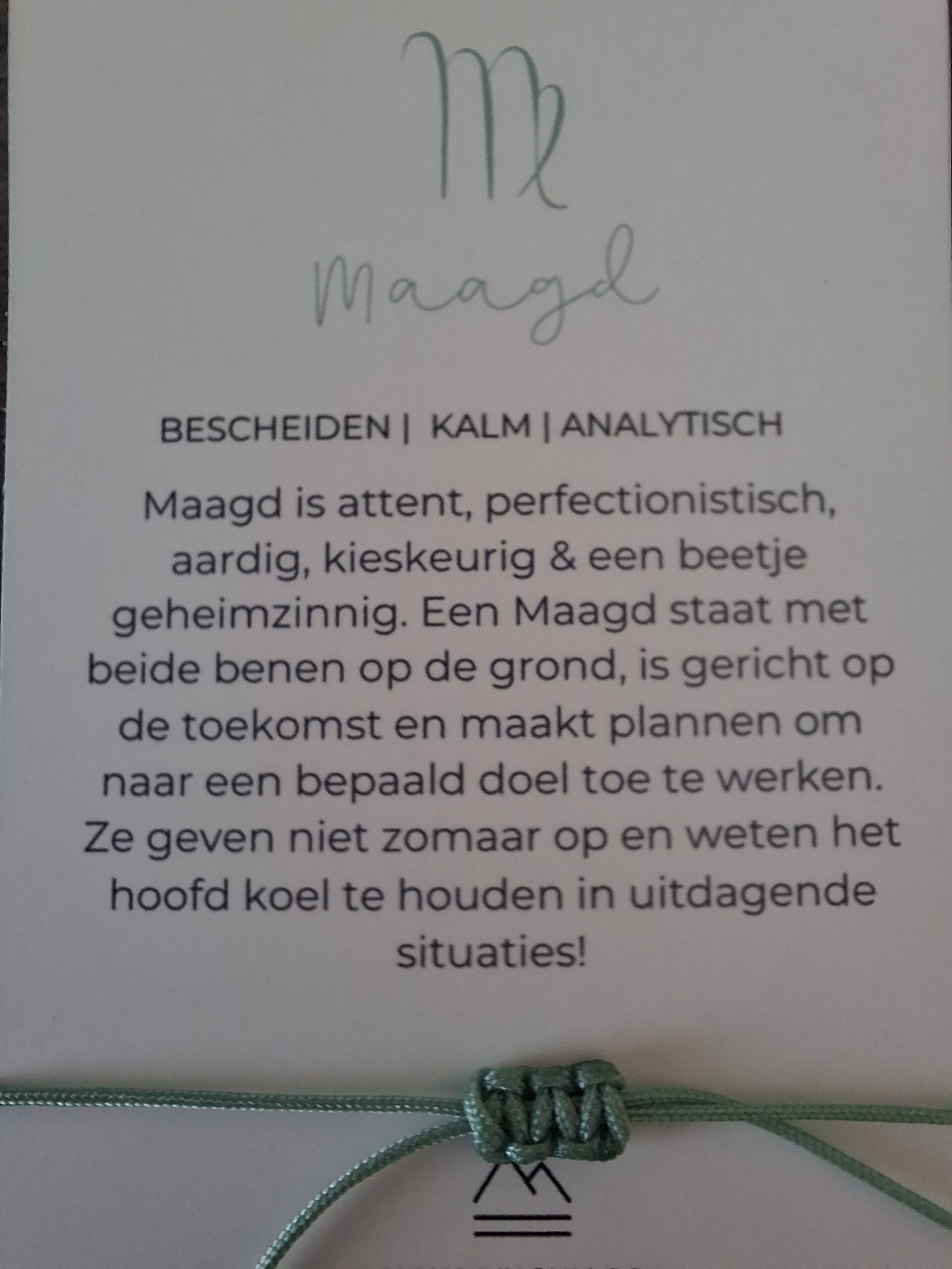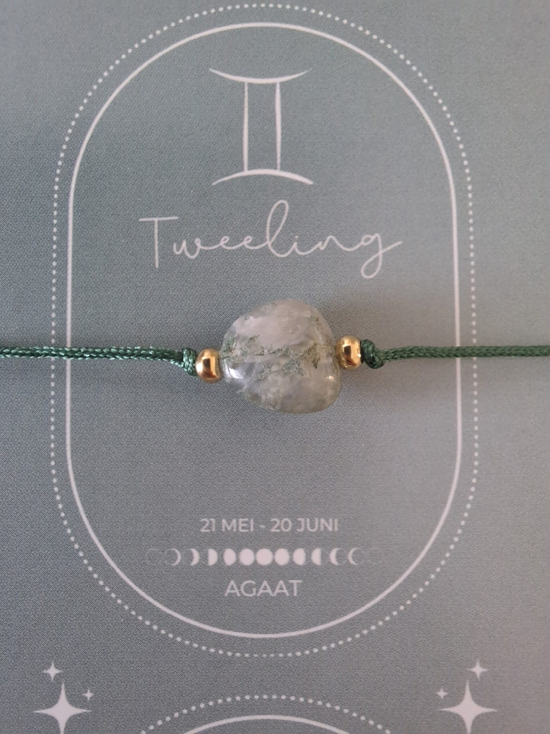 Bij iedere armband ontvang je een bijpassend kaartje: op de voorkant vind je de edelsteen en op de achterkant staat een uitleg van de kracht van de edelsteen én een korte beschrijving van het sterrenbeeld. Zo wordt het sieraad niet alleen een stijlvol accessoire, maar ook een persoonlijke reminder die jou dagelijks inspireert en ondersteunt.